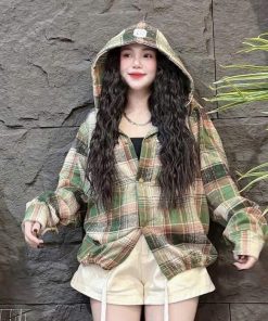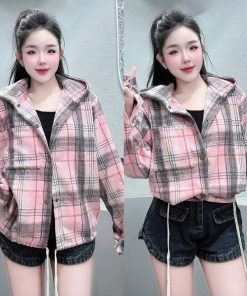 Tên sản phẩm: ÁO KHOÁC NỮ VẢI DẠ CARO PHỐI 2 LAI LUỒNG MẶC ĐƯỢC 2 KIỂU MŨ RỘNG CHỐNG NẮNG TỐT TP51
