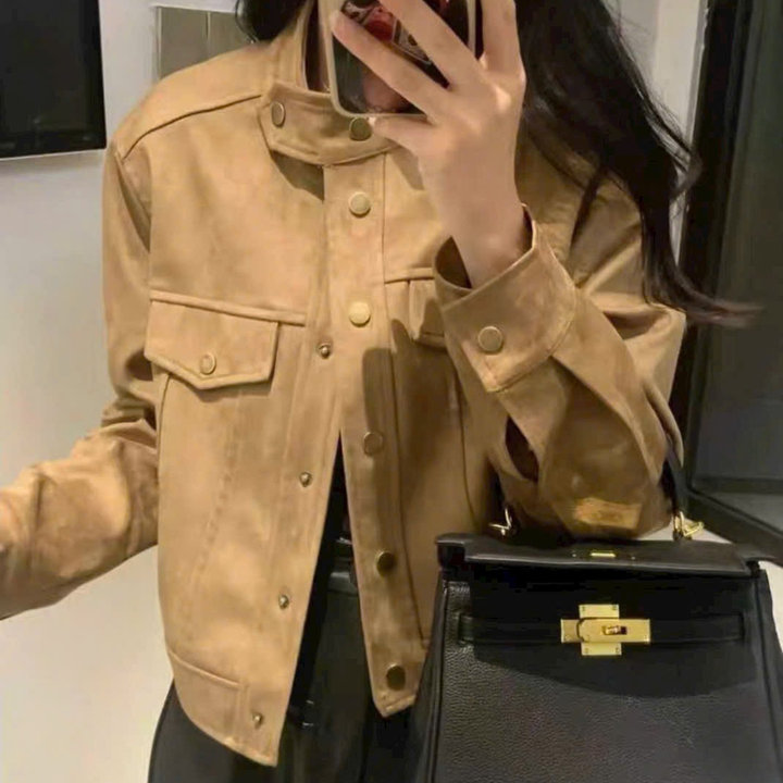 Tên sản phẩm: ÁO KHOÁC NỮ VẢI DA LỘN GIẢ JEAN 2 LỚP FORM LỬNG CÓ CÚC BẤM CỔ TP60 – PHƯƠNG STORE