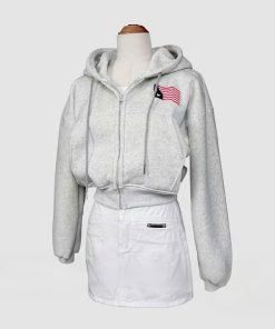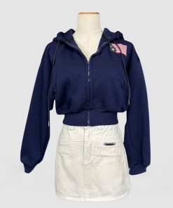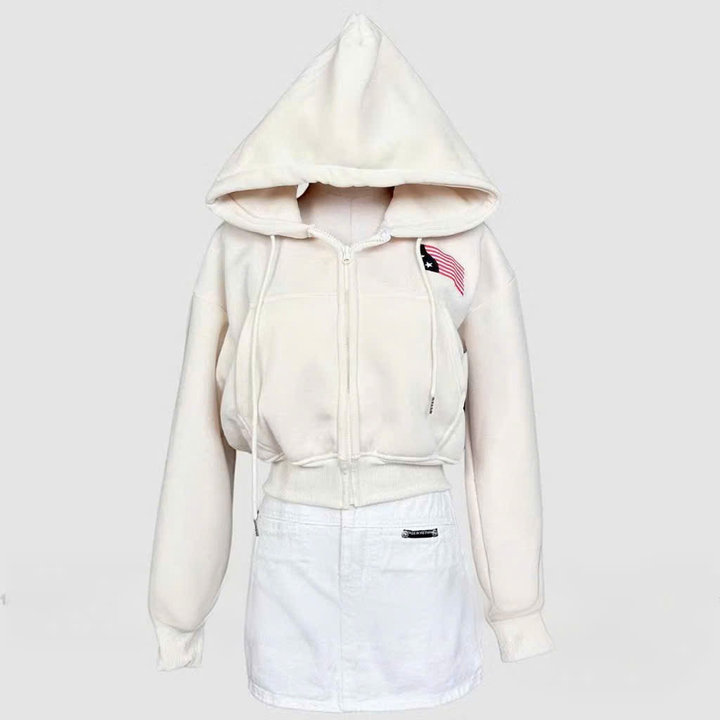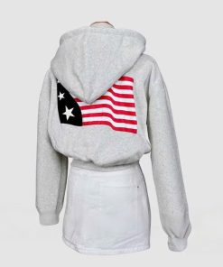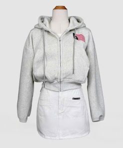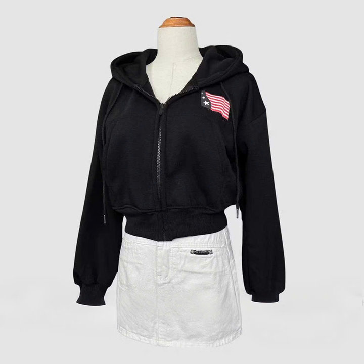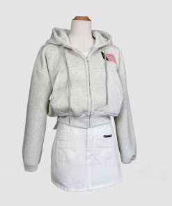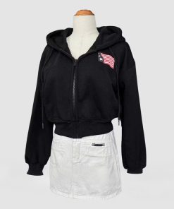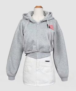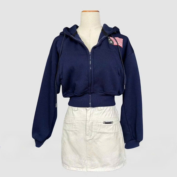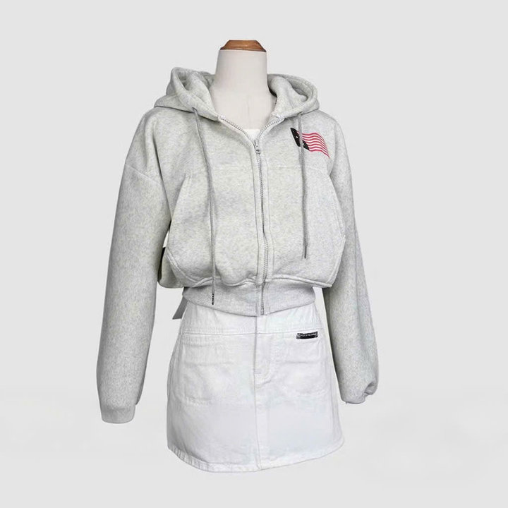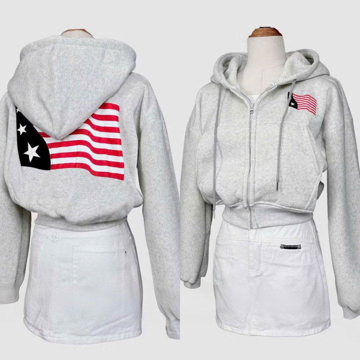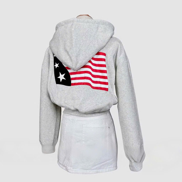 Tên sản phẩm: ÁO KHOÁC NỮ VẢI NỈ DÀY DẶN IN NỔI LÁ CỜ FORM BOXY LỬNG, MŨ 2 LỚP, ÁO CÓ TÚI TRONG TP50 – GOLDEN DREAM