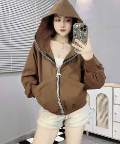 Tên sản phẩm: ÁO KHOÁC NỮ VẢI NỈ FORM LỬNG PHỐI DÂY KÉO LỚN MŨ RỘNG CÓ TÚI TRONG SIÊU XINH UT38 – GOLDEN DREAM