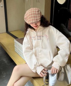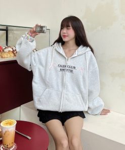 Tên sản phẩm: ÁO KHOÁC NỮ VẢI NỈ IN CHỮ CALEEM SWEET PHỐI 2 TÚI XINH TP55 – GOLDEN DREAM