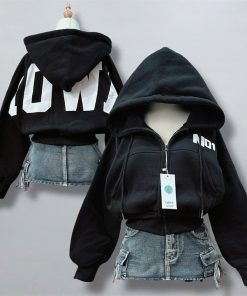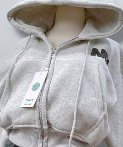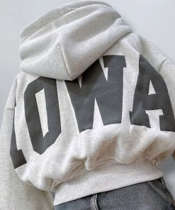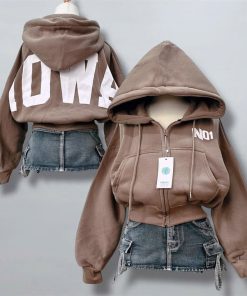 Tên sản phẩm: ÁO KHOÁC NỮ VẢI NỈ NGOẠI FORM BOXY LỬNG IN NỔI CHỮ NOWAA, CÓ TÚI TRONG, MŨ 2 LỚP TP71 – GOLDEN DREAM