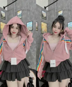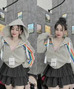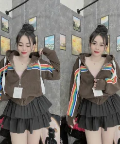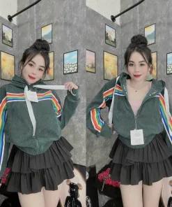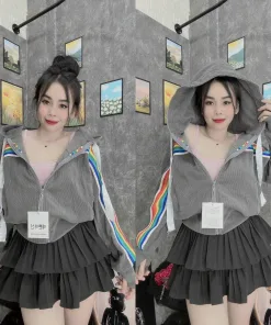 Áo Khoác Nữ Với Chất Dáng Kiểu Lửng Phối Sọc Siêu Đẹp Chất Liệu Vải Nỉ Mặc Mát Mẻ Và Dày Dặn Áo Có Túi Bao Ngầu Áo Đẹp-HTM FASHION