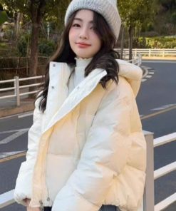 Tên sản phẩm: ÁO KHOÁC PHAO CHẦN BÔNG NỮ FORM LỬNG TRƠN CÓ MŨ PHỐI DÂY RÚT EO UT40 – GOLDEN DREAM