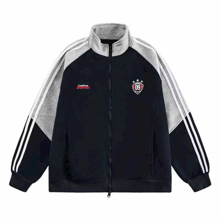 Thiết Kế Thời Trang: Áo khoác được thiết kế với kiểu chạy sọc nổi bật trên vai, tạo điểm nhấn ấn tượng và khác biệt. Logo in nổi trang trí tinh tế, thể hiện cá tính và phong cách riêng của người mặc.