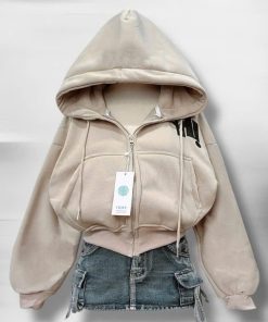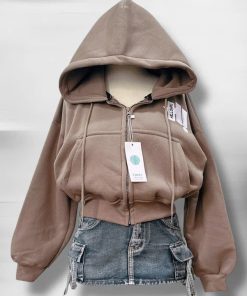 Tên sản phẩm: ÁO KHOÁC VẢI NỈ FORM LỬNG NỮ THÊU CHỮ HI CÓ TÚI TRONG MŨ RỘNG TP59 – GOLDEN DREAM