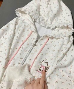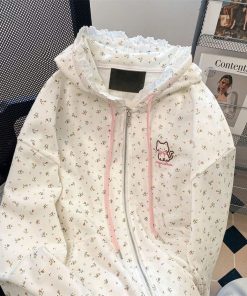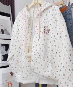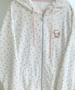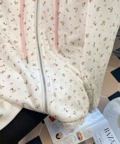 Tên sản phẩm: ÁO KHOÁC VẢI NỈ PHỐI REN MŨ VÀ BO CHUN IN HOA TOÀN BỘ THÊU MÈO CHỐNG NẮNG TỐT TP63 – GOLDEN DREAM