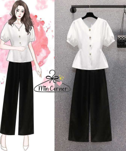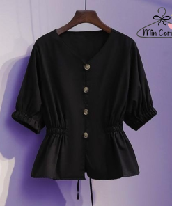 Tên sản phẩm: Áo kiểu nữ Cổ V Tay Phồng Cột Eo chất lụa mịn mát – MIN CORNER