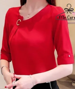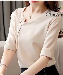 Tên sản phẩm: ÁO KIỂU TAY LỠ CỔ ĐÍNH PHỤ KIỆN CHỮ C MS77 – MIN CORNER