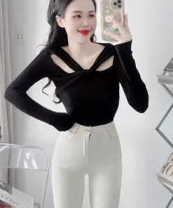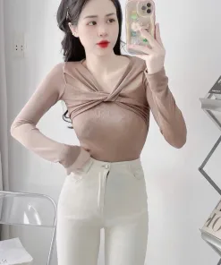Tên sản phẩm: ÁO KIỂU XOẮN NGỰC TAY DÀI THUN TĂM LẠNH – LÊ PHƯƠNG BOUTIQUE