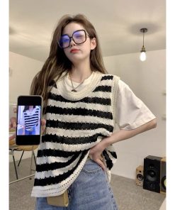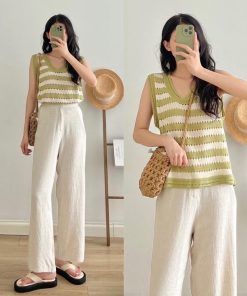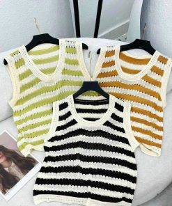 ÁO LEN 3 LỖ DỆT KIM HỌA TIẾT KẺ NGANG FORM RỘNG