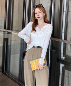 – Aó được thiết kế dạng cổ tròn, dáng ngắn, ôm body phối cùng với hàng khuy mở ở giữa, người mặc có thể tùy ý điều chỉnh theo ý muốn.