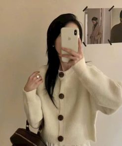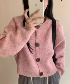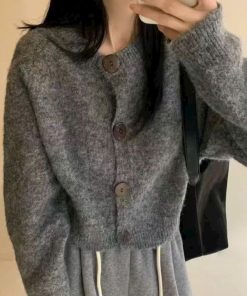 Áo được thiết kế dáng Cargan dễ mặc, phối cúc gỗ mở khuy siêu xinh