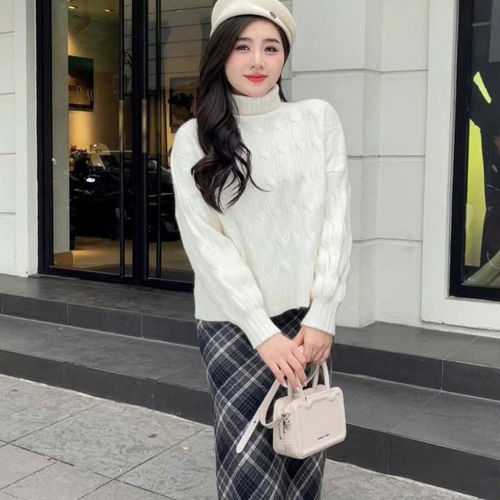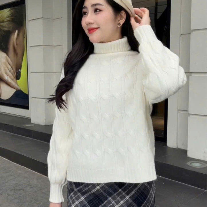 Bên em về mã áo len cổ lọ hàng QC. Chất len xịn không bai dão.