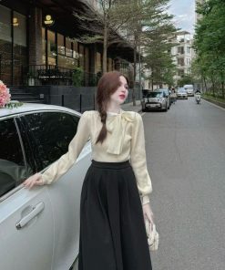 – Aó được thiết kế kiểu dáng nhẹ nhàng với phần tay dài bồng, phối với phần dây voan nơ to bản mang lại vẻ nhẹ nhàng, nữ tính