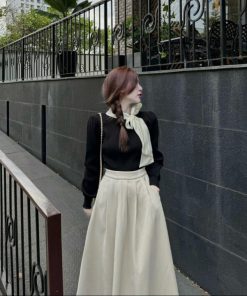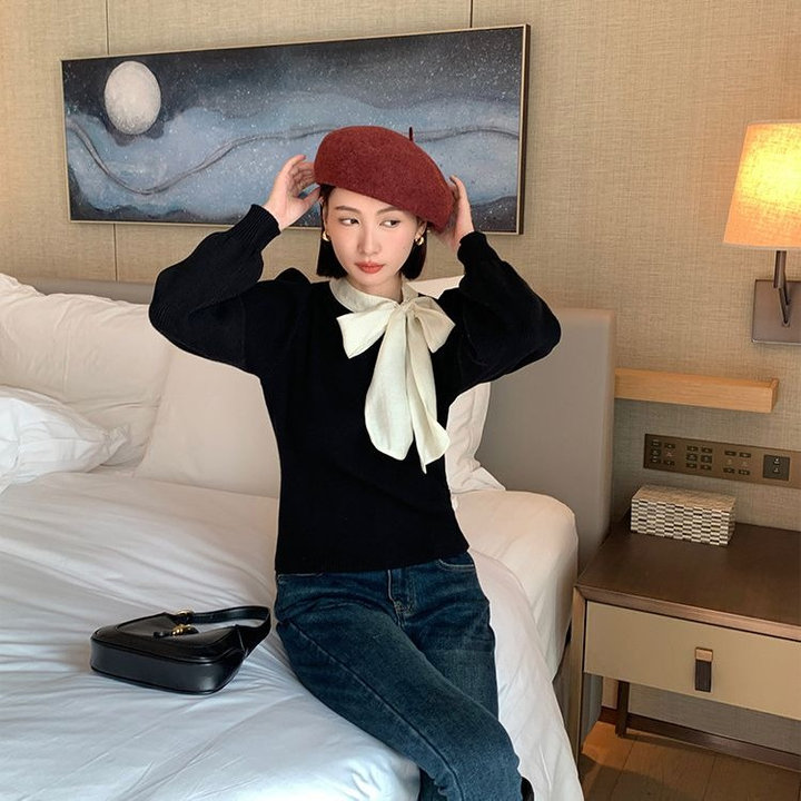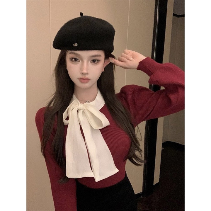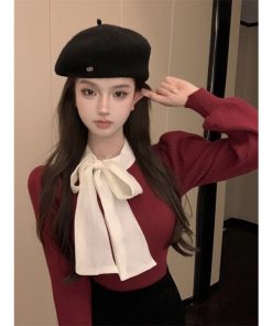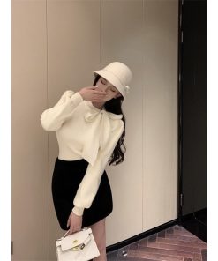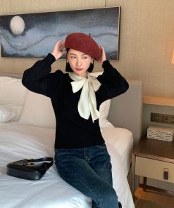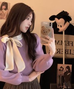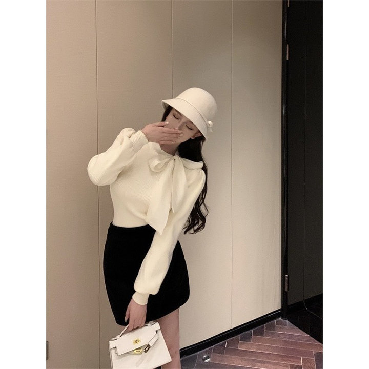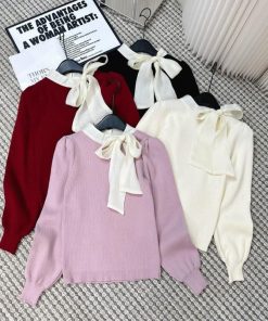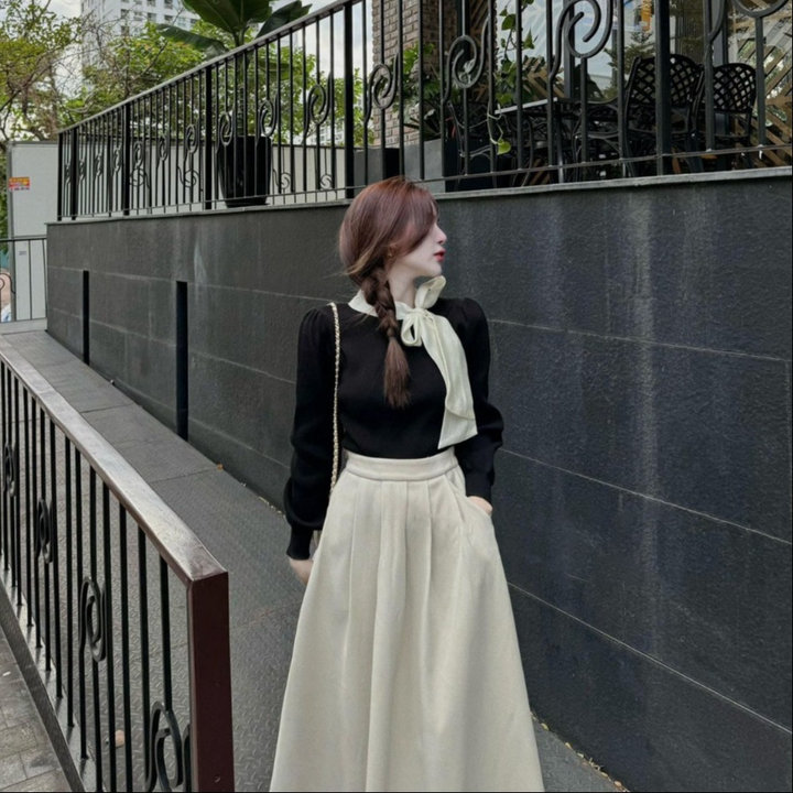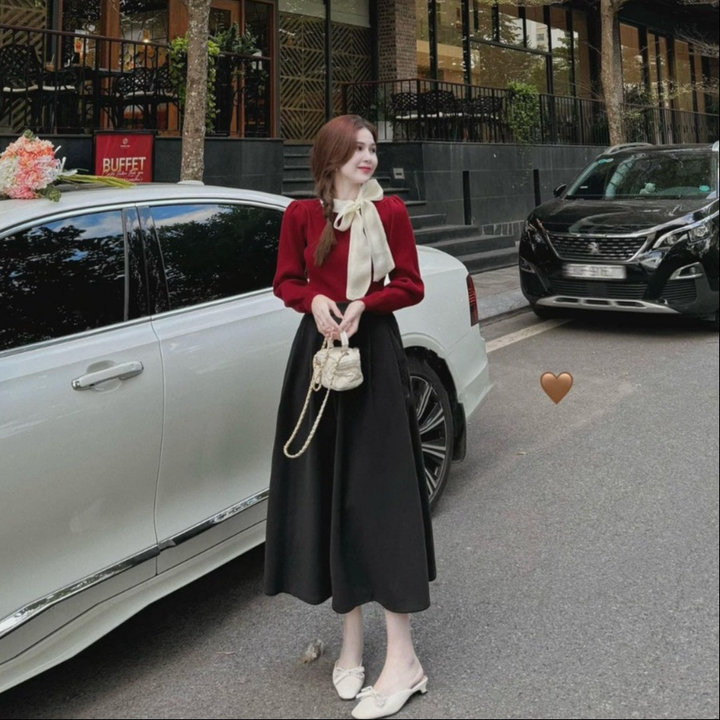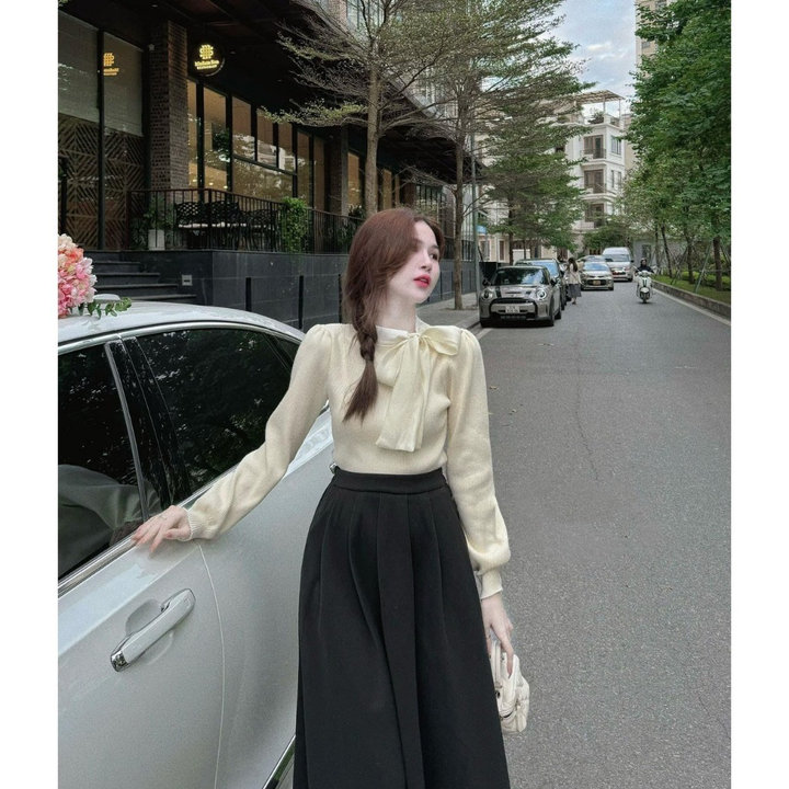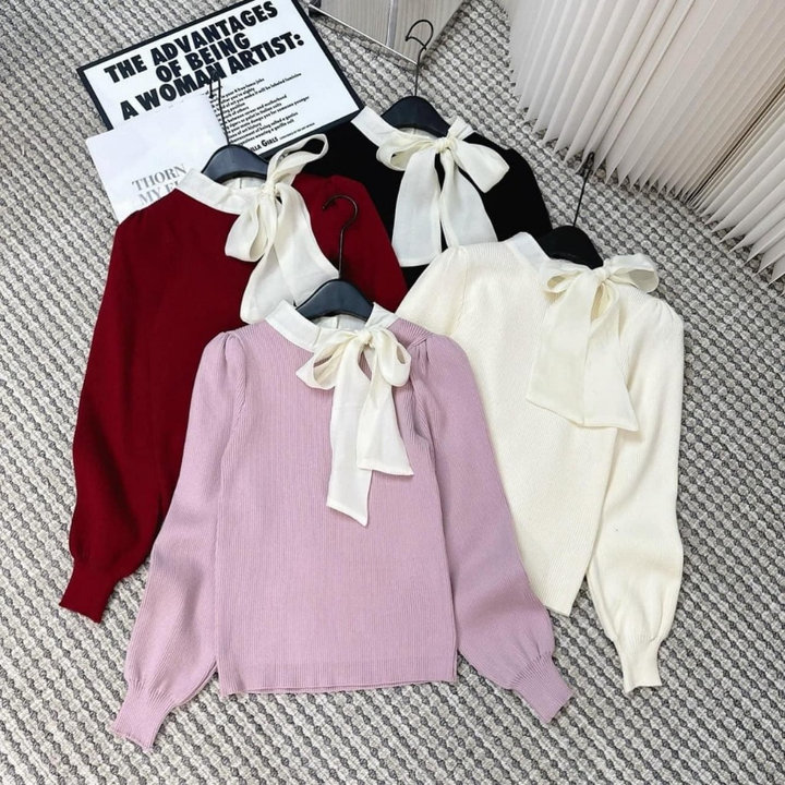 ÁO LEN CỔ PHỐI DÂY VOAN BUỘC NƠ TO DỊU DÀNG NỮ TÍNH DÀNH CHO BẠN NỮ