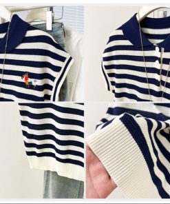 – Aó được thiết kế với phần cổ bẻ, kiểu dáng sát nách phối với họa tiết kẻ ngang trẻ trung. Điểm nhấn của áo là logo có hình ngựa được thêu trước ngực