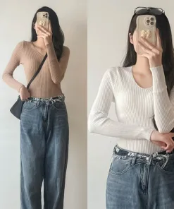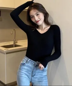 – Với thiết kế kiểu dáng cổ tim, tay dài vừa mang lại vẻ sexy, thời trang cũng giúp giữ ấm cơ thể