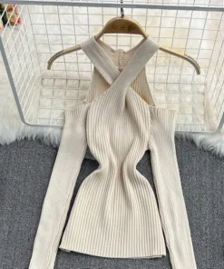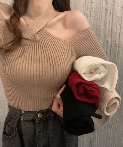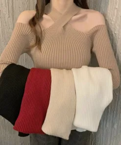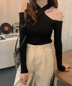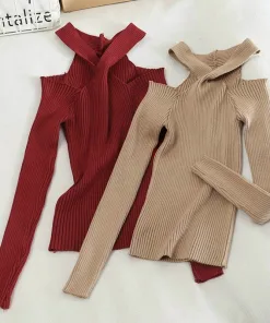 ÁO LEN CỔ VẮT CHÉO KHOÉT VAI QUYẾN RŨ