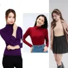 - Chất vải len không quá dày, form áo bó tôn dáng.