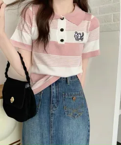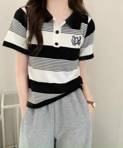 – Thiết kế dáng rộng croptop với hoạ tiết sọc kẻ thêu hình hổ con dễ thương làm điểm nhấn