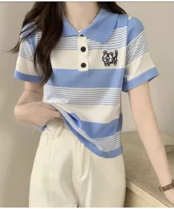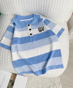 – Thiết kế dáng rộng croptop với hoạ tiết sọc kẻ thêu hình hổ con dễ thương làm điểm nhấn