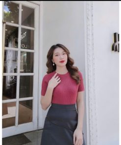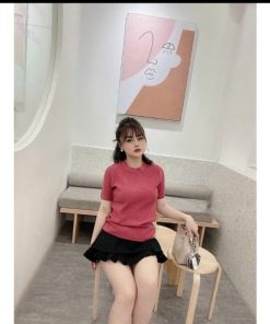 Áo len Cộc Tay Cổ Tròn Len QC Gân Mềm Mịn Màu Hồng Đất