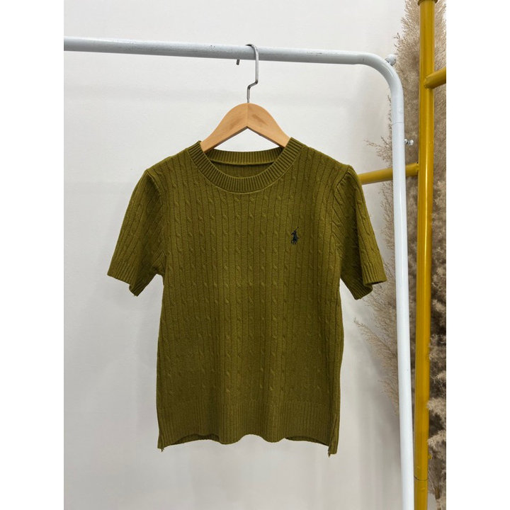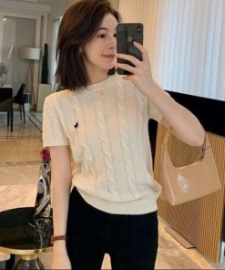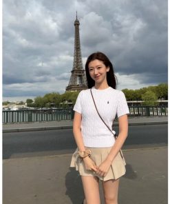– Aó được thiết kế cổ tròn, cộc tay với form dáng vừa người mang lại cảm giác thon gọn. Họa tiết vặn thừng phối với phần logo được thêu trước ngực áo tạo điểm nhấn