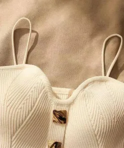 Bạn muốn thêm phần sang trọng và thu hút vào trang phục hàng ngày của mình? Đừng bỏ lỡ chiếc áo len cúp ngực với chi tiết cúc vàng độc đáo này! 💃🌼