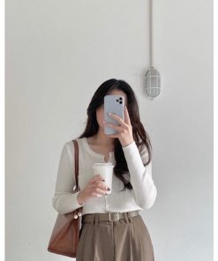 – Aó được thiết kế dạng cổ tròn, dáng ngắn, ôm body phối cùng với hàng khuy mở ở giữa, người mặc có thể tùy ý điều chỉnh theo ý muốn.