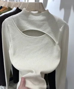 ÁO LEN DÀI TAY CỔ 3 CM KHOÉT NGỰC SEXY CHO BẠN NỮ