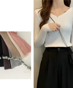 ÁO LEN DÀI TAY CỔ TIM CHẤT LIỆU LEN LÔNG CỪU MỀM MẠI CHO BẠN NỮ