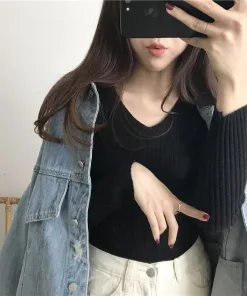 – Với thiết kế kiểu dáng cổ tim, tay dài vừa mang lại vẻ sexy, thời trang cũng giúp giữ ấm cơ thể