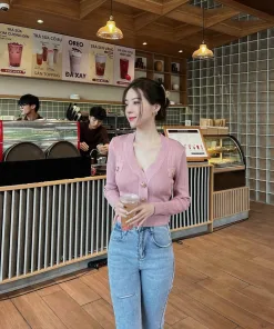 - Tên sản phẩm: Áo Len Dài Tay Cổ Tim Khuy Vàng – Chipxinhxk