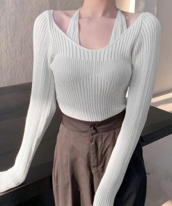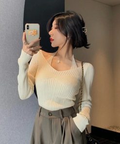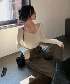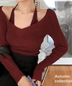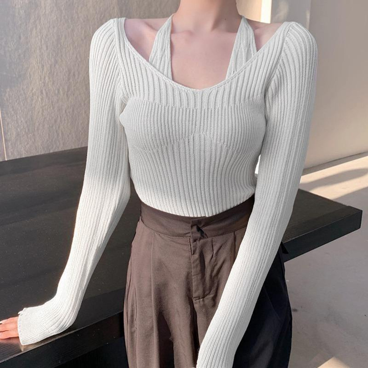 ÁO LEN DÀI TAY CỔ TIM PHỐI DÂY BUỘC PHONG CÁCH HÀN QUỐC