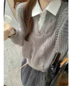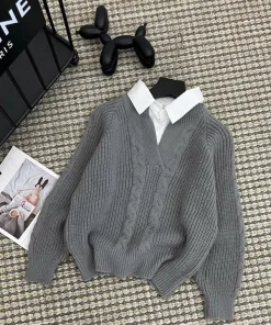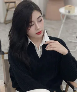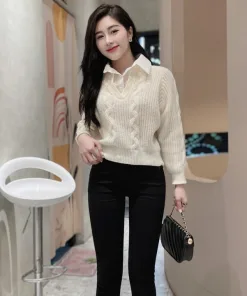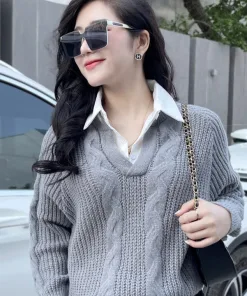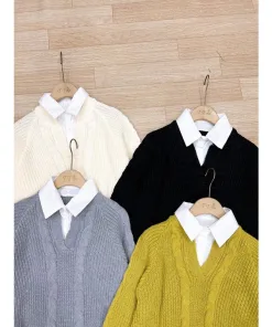 ÁO LEN DÀI TAY PHỐI CỔ SƠ MI HỌA TIẾT VẶN THỪNG DÀNH CHO BẠN NỮ