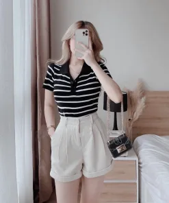 – Tông màu basic trẻ trung giúp áo có thể dễ dàng mix- match với những items khác nhau như: quần short, quần jeans. chân váy… tạo nên bộ trang phục trẻ trung, thanh lịch💯❤️