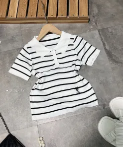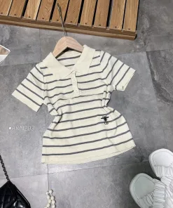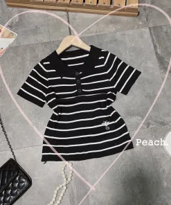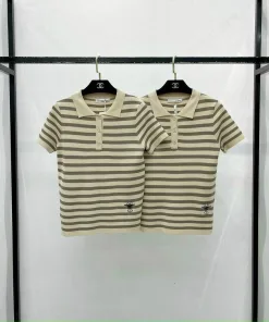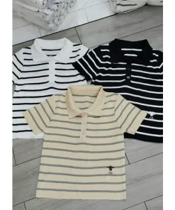 – Áo được thiết kế trang nhã, lịch sự với phần cổ bẻ, họa tiết kẻ ngang nổi bật cùng với điểm nhấn là họa tiết ong được thêu trên áo