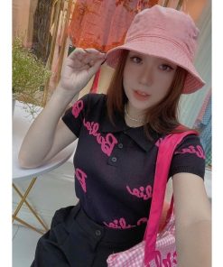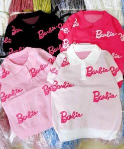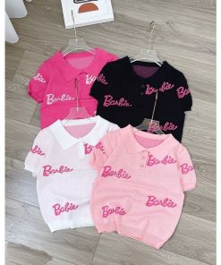 ÁO LEN DỆT KIM CỘC TAY CỔ BẺ KHUY GIỮA HỌA TIẾT CHỮ BARBIE 4 MÀU