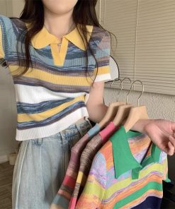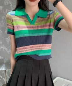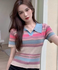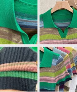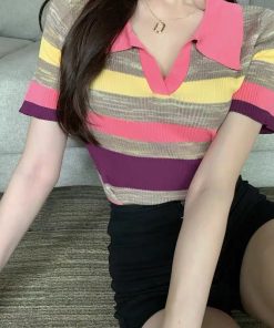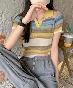 ÁO LEN DỆT KIM DÁNG CROPTOP PHỐI MÀU NGŨ SẮC