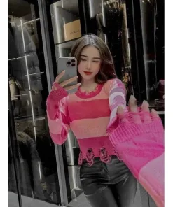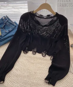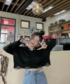 ÁO LEN DỆT KIM DÁNG CROPTOP RÁCH TUA RUA 4 MÀU CỰC XINH