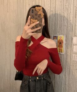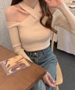 ÁO LEN DỆT KIM KHOÉT VAI KIỂU DÁNG SEXY CHO BẠN NỮ