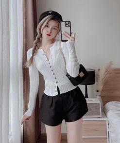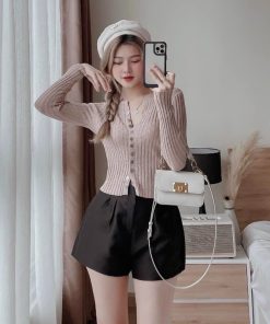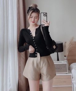 – Aó được thiết kế dạng cổ tròn, dáng ngắn, ôm body phối cùng với hàng khuy mở ở giữa, người mặc có thể tùy ý điều chỉnh theo ý muốn.