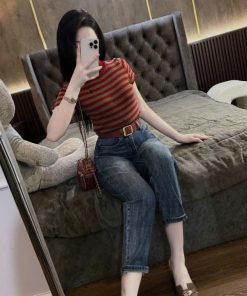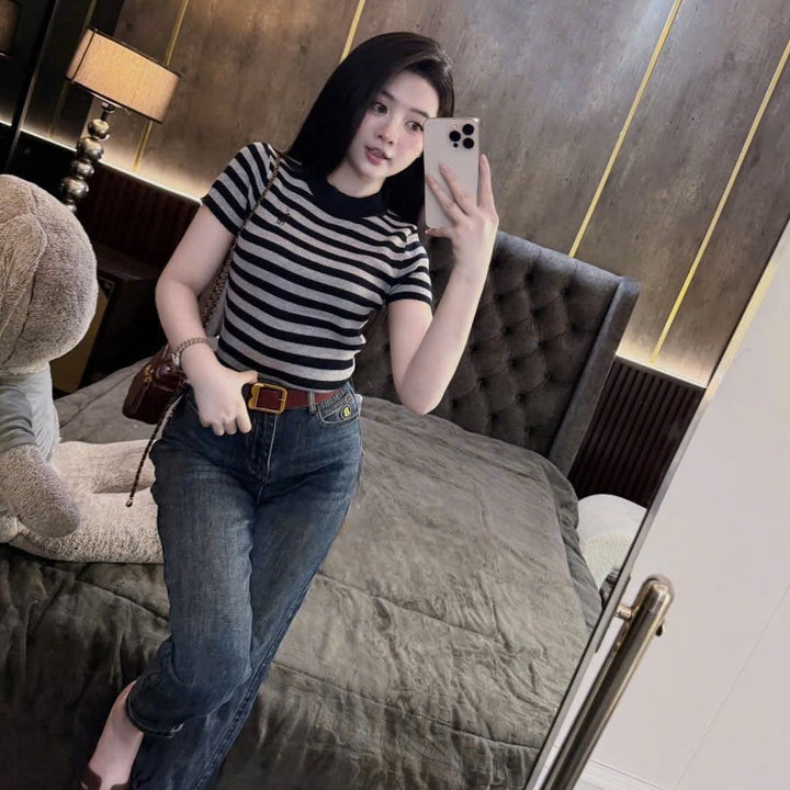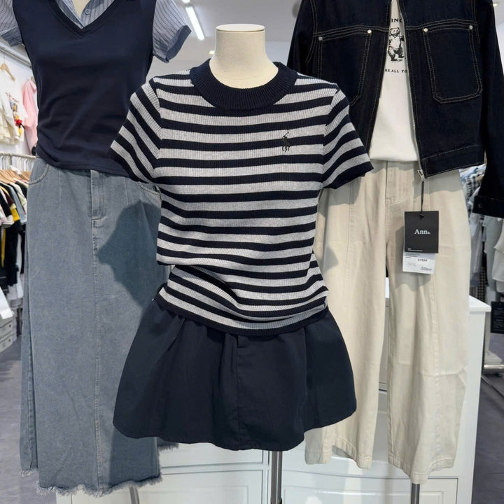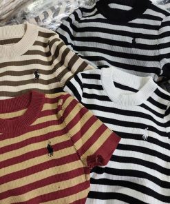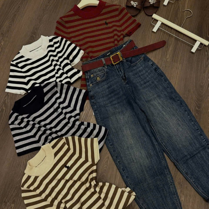 -Áo được thiết kế kẻ phối màu cực xinh,điểm nhấn thêu hình ngựa đáng yêu trước ngực