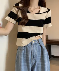 – Áo thiết kế trẻ trung, thời trang với phần sọc kẻ ngang được phối màu bắt mắt