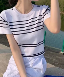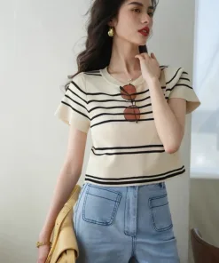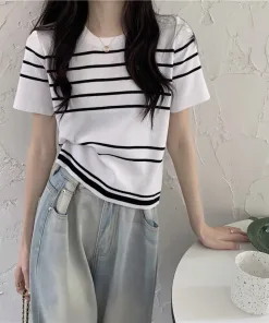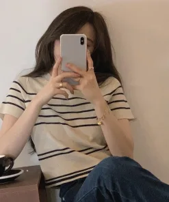 – Tông màu chủ đạo là đen,trắng và be với đường kẻ sọc độc đáo tạo nên một chiếc áo đơn giản, trẻ trung nhưng cực "nịnh mắt"
