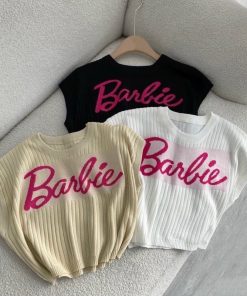 – Thiết kế dáng croptop trẻ trung, dòng chữ BARBIE được in giữa áo là điểm nhấn giúp chiếc áo thêm phần nổi bật