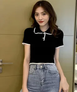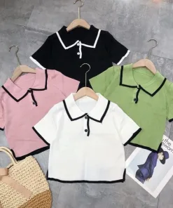 Cổ bẻ có viền đen quanh cổ và viền áo