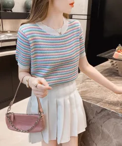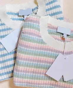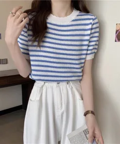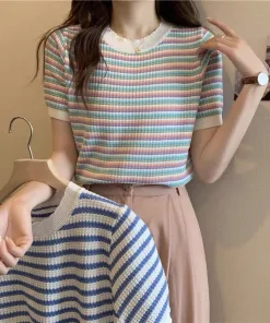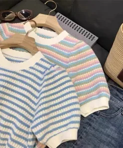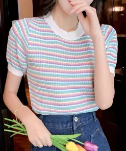 Áo len dệt kim nữ tay bồng kẻ màu cực xinh