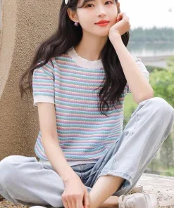 -Thiết kế basic, cổ tròn, phối màu cực xinh trẻ trung dễ mix match